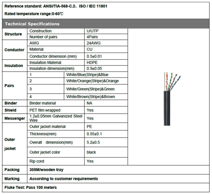 Cable UTP cat6e 24AWG Negro 305 mts. C/Mensajero Exterior 100% cobre