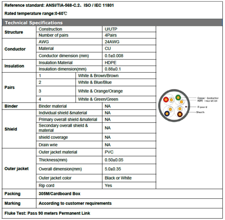 Cable UTP cat5e 24AWG Negro 305 mts. Exterior 100% cobre