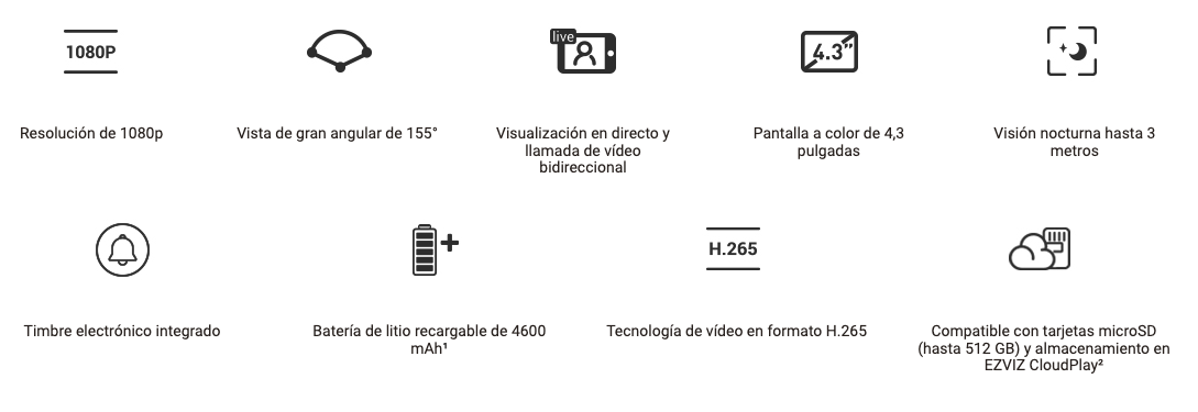 Timbre y mirilla Inteligente 2MP Inalámbrico con Batería CS-HP4-R100-6E2WPFBS Ezviz